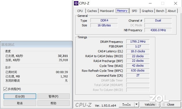 通过测试成绩我们可以看到,内存频率的高低对解压缩的成绩影响也十分明显。如上图,在3600MHz测试中,最终解压缩成绩为37311,同比2666MHz分数提升了3210,提高到分数较为显著。