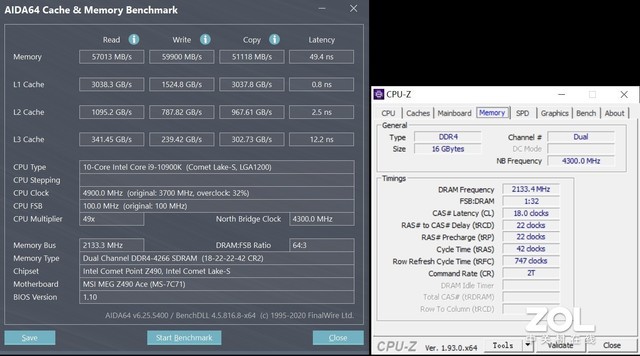 内存时序:C18-22-22-42 CR2,频率为4266MHz