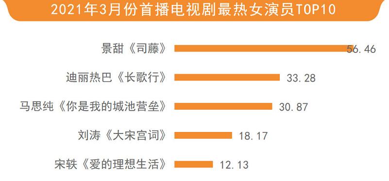 虽然说剧情很重要,但演员能否演绎到位也同样重要呢。为此,这段时间已经有平台将三月份最热女演员Top10的排名榜单已经官宣。其中能够进入前五名的女演员分别是景甜、迪丽热巴、马思纯、刘涛和宋轶。
