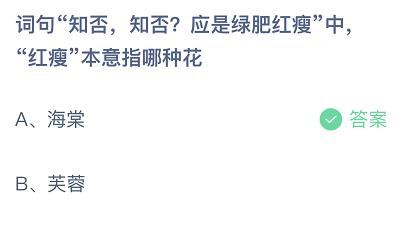 1、词句“知否,知否?应是绿肥红瘦”中,“红瘦”本意指哪种花?