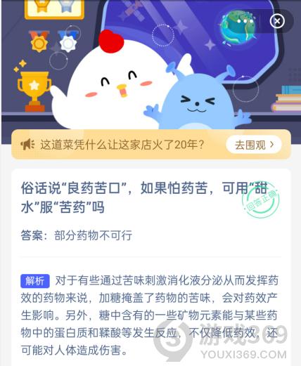 2、俗话说良药苦口如果怕药苦可用甜水服苦药吗?