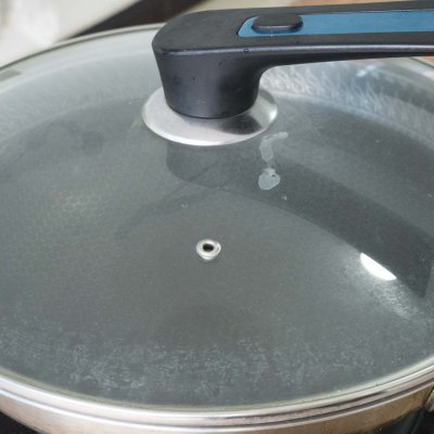 8、接着我们就可以来烧水了,盖子盖子把水烧热就行,看到锅里的水烧到有小气泡的时候我们开始捏丸子;
