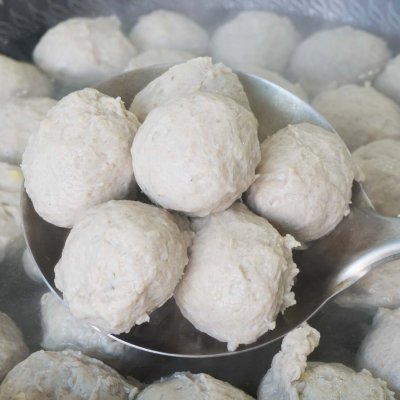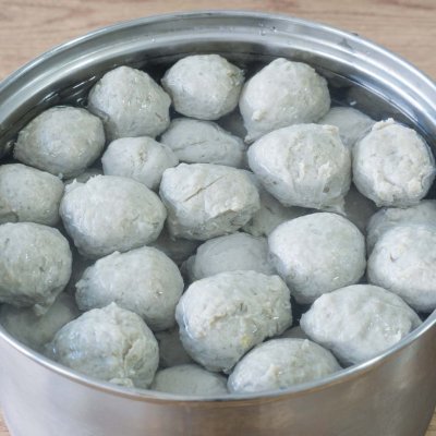 11、捞出来后迅速的放入之前准备好的冰水中过一下,这样可以让丸子迅速的降温,同时让丸子更加的Q弹,接着捞出丸子后就可以吃了。