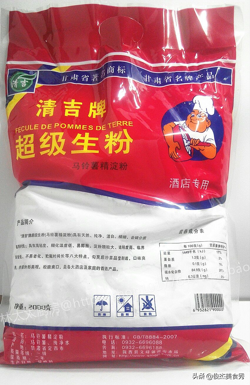 生粉大家不太熟悉,但是作为一名厨师,就很家常了,勾芡必须要用生粉,是淀粉代替不了的,生粉其实就是土豆淀粉,也叫马铃薯粉,要高级一点,它的粘性比较强,透明度高,主要适用于菜的勾芡,让汤汁圆润饱满,色泽通透有亮度,不管是素菜还是荤菜都用到生粉勾芡,是普通淀粉代替不了的,淀粉勾芡浑浊,颜色发乌,卖相不好。但是生粉不适合上浆拍粉,它的粘性强,不容易操作。