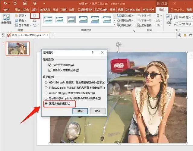 操作说明:选择相应的图片插入PPT中,然后点击【格式】-【图片压缩】