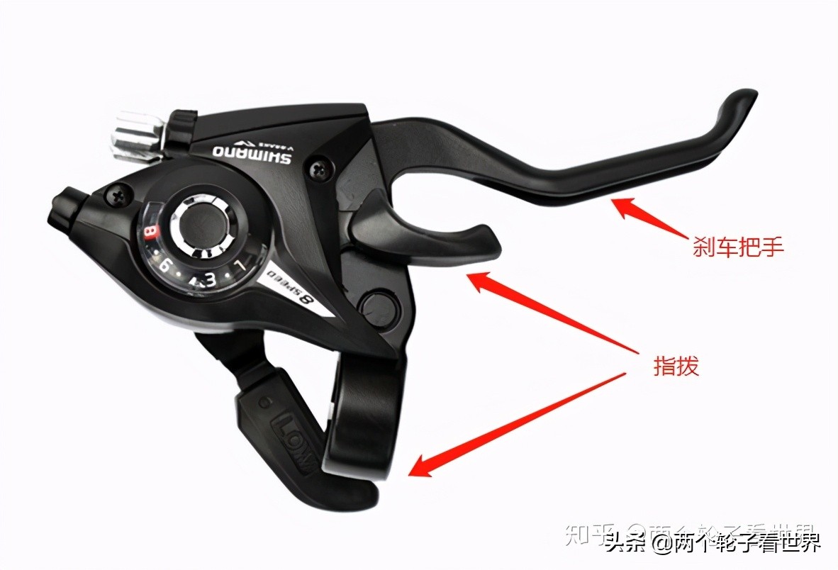 变速器——可以通过指拨调节变速器的齿比,来决定脚蹬的力度和行驶的速度。