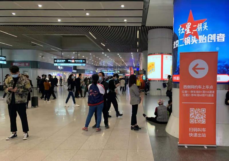 为解决交通接驳不便,缓解“五一”假期旅客打车难问题,重点站区管委会协调在北京西站、北京南站、北京朝阳站开辟网约车停靠载客专区,同时,为方便乘客快速离场的需求,管委会提前协调滴滴公司在北京西站、北京南站、朝阳站站内关键位置,增设线下指引标识,在滴滴客户端上线“乘客步行引导卡”服务功能,方便定位快速找到乘车点位。