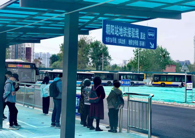 开行北京朝阳站直达地铁10号线、14号线专线车,并接入电子地图平台,实现远端查询,形成远端引导。抵京旅客可在东侧广场乘坐专线车直达地铁14号站“东风北桥”站和地铁10号线“亮马桥”站,换乘地铁通行。同时,在站台设置刷卡机,方便旅客提前刷卡乘车,快速登乘。