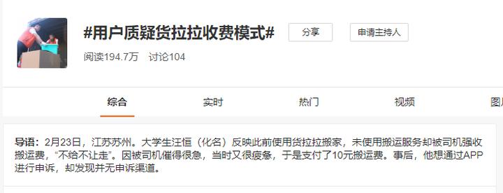 最近,货拉拉收费话题,如大学生指货拉拉司机强收搬运费,用户质疑货拉拉收费模式,引起广泛讨论。