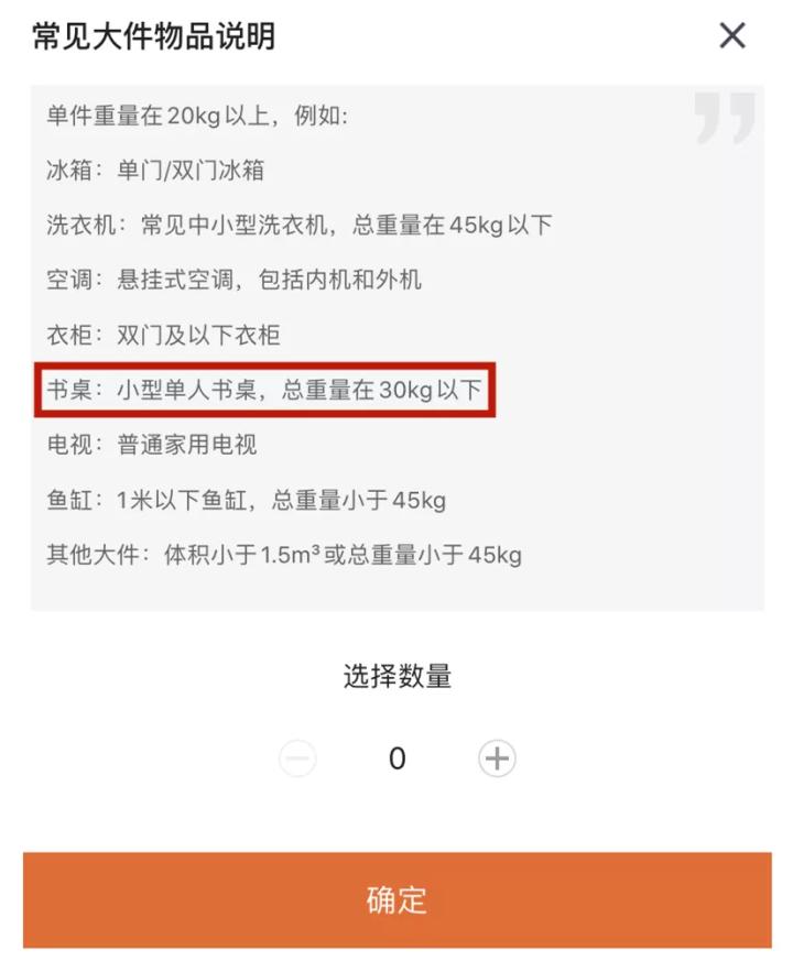 又是加钱这个字眼,小陈心里已经有点怀疑了,打开货拉拉APP查看了关于大物件的标准,平台明确规定,30千克以上,才算大物件,并拒绝了师傅的要求。