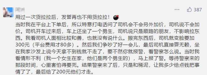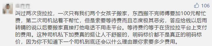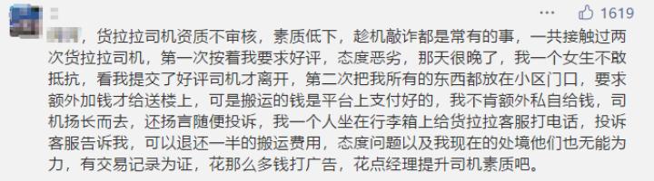 不管是在微博的评论还是在微信的评论中,除了对事件本身的讨论,记者还发现了一些不少网友在用过货拉拉之后的“吐槽”。
