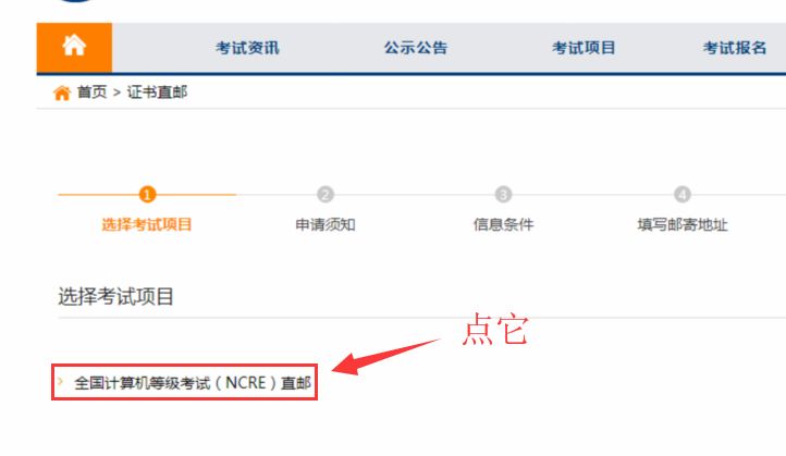 第四步:选择申请证书直邮,并且选择考试科目。