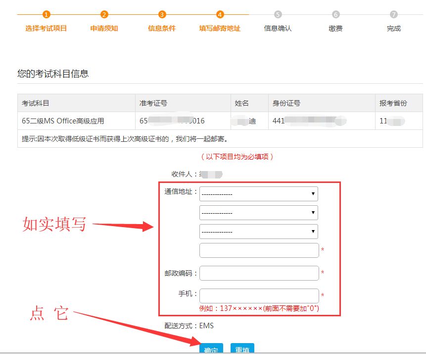2.考生须使用本次报名的姓名和有效身份证件号进行申请,并填写有效的邮寄地址和联系电话,收件人须为考生本人。