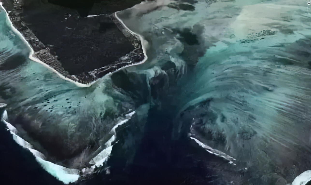 当海洋学家在格陵兰岛的航线上测量海水流动的速率时,无意中发现了这条巨大的海底瀑布。当科学家将水流计置入海中时,水流计被强大的水流冲刷瞬间毁坏,引起了科学家的注意,才让这座巨型瀑布面世。