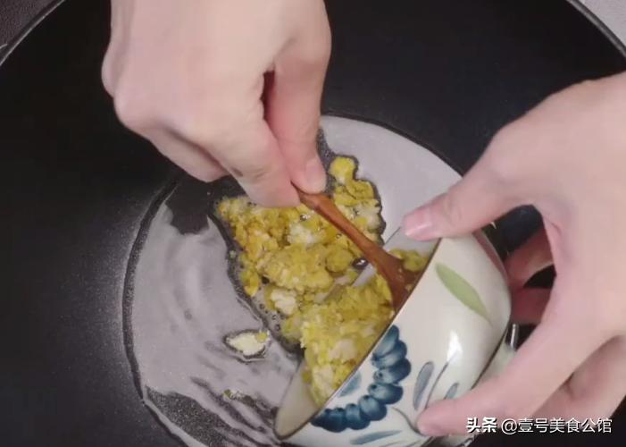 虽然这道菜名中有“蟹”,但笔者为了节省成本,又保证菜式的整体口感,特意用鸭蛋黄代替蟹黄,来烹饪这道美味。
