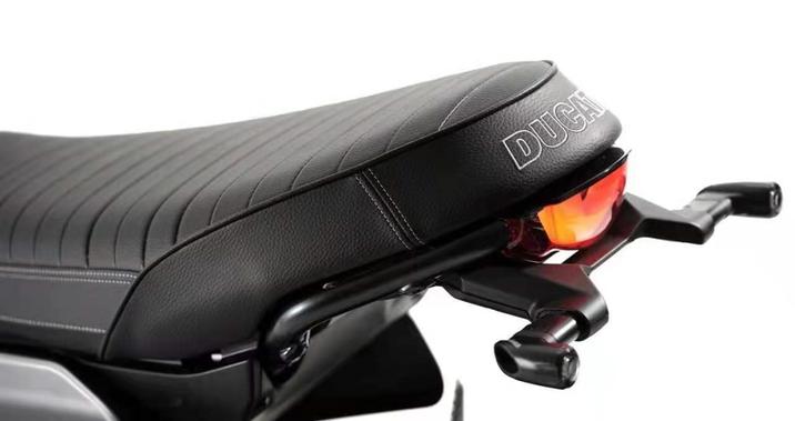 圆形X形大灯和环形LED日行灯是Scrambler标识配置,一体式直把和Scrambler 1100 Sport Pro风格一致,还记得《毒液》里面的那台Scrambler1100吗?并且保留了cafe racer的圆形后视镜和Full Throttle的标志性油箱侧板。