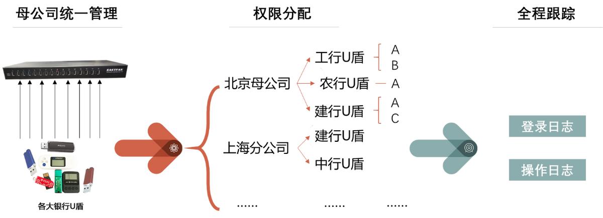 ● 网银U盾如果很多,可实现集群管理,统一管理。
