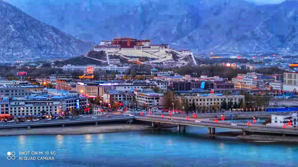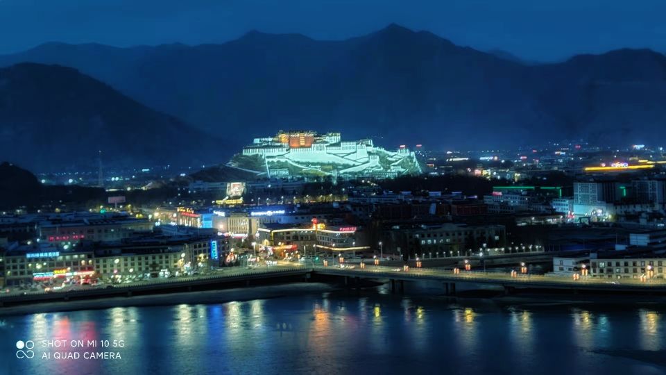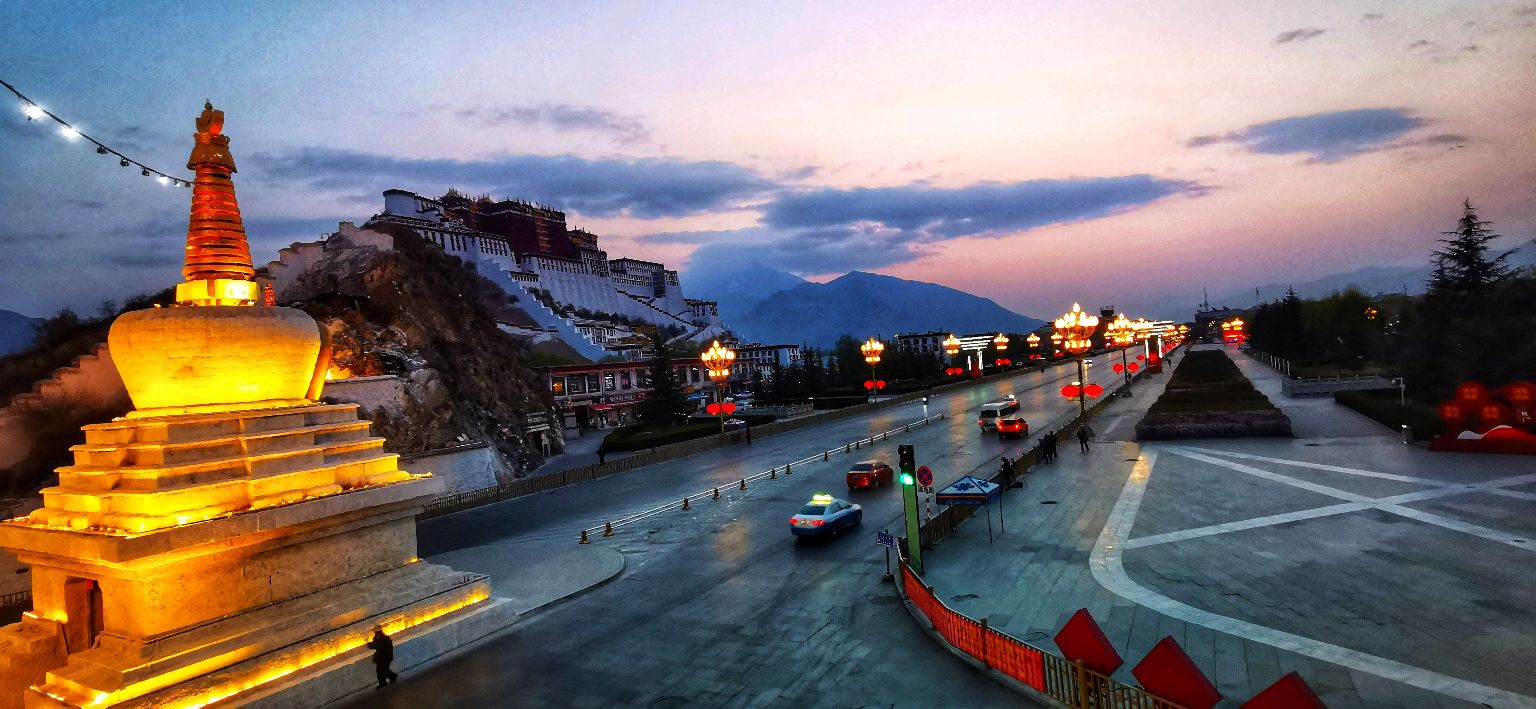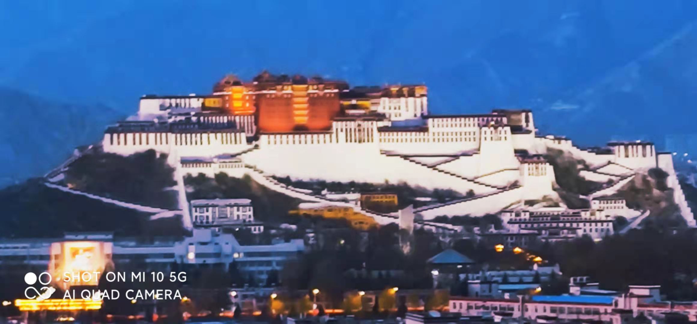 2021年4月8日,西藏拉萨市南山公园远眺布达拉宫夜景。