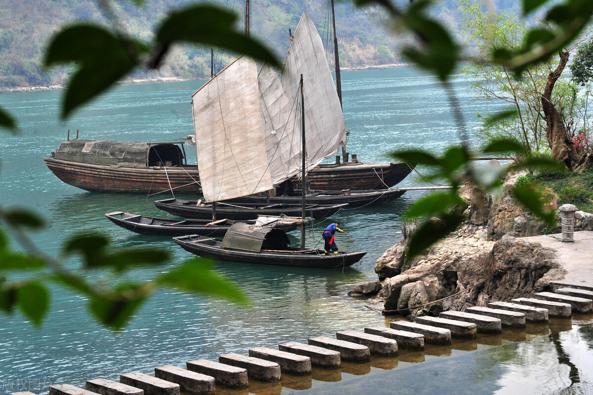 久违的古帆船和乌篷船漂泊在长江上。