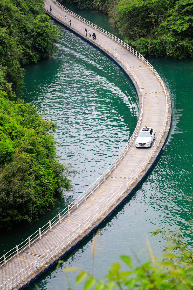 登高向下俯瞰,栈道犹如长龙纵卧水面,堪称中国最美浮桥。