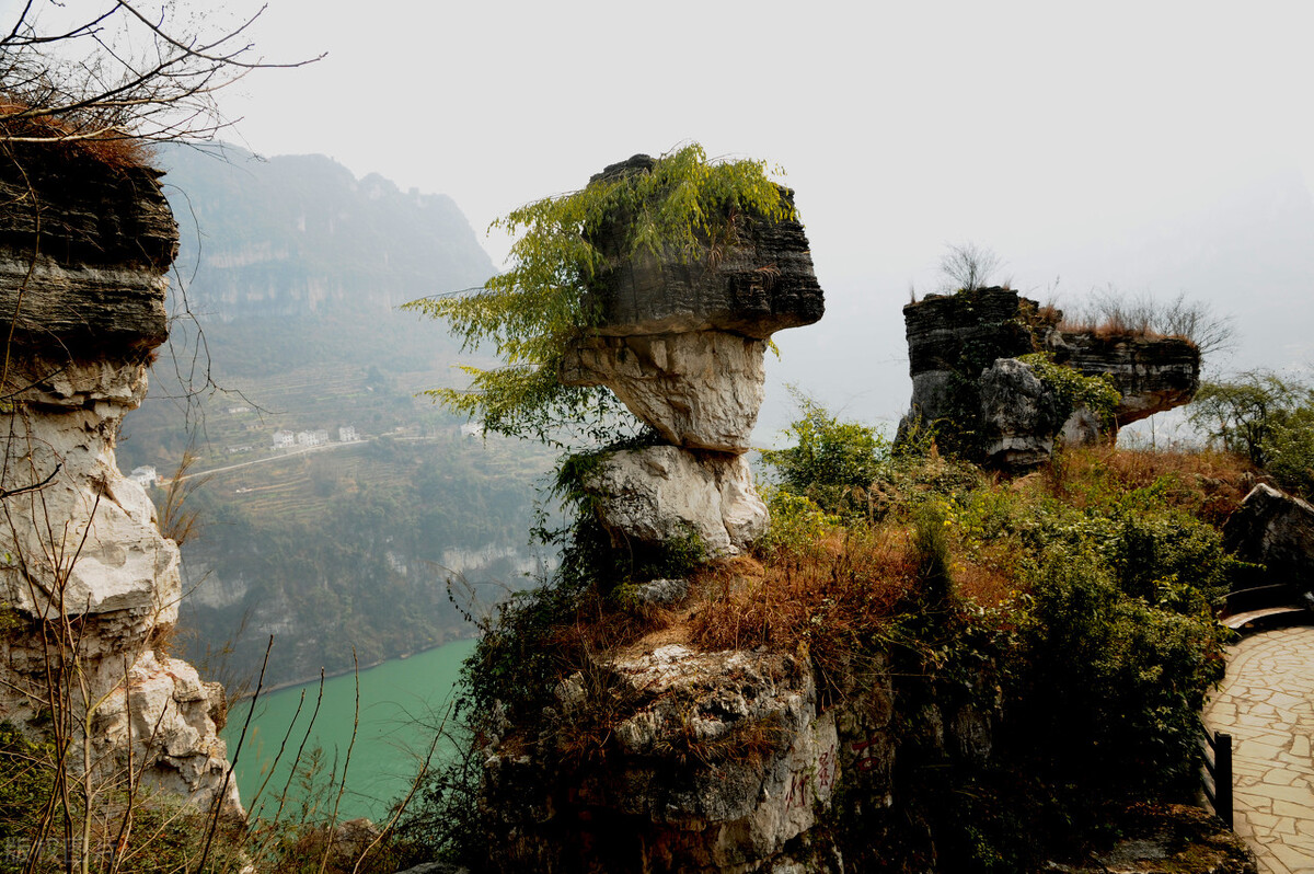 矗立在悬崖绝壁之巅的“灯影石”是灯影峡的标志性景点。