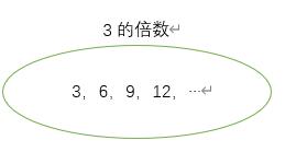 表示方法:先画一个椭圆,在椭圆的上面写上“a的倍数“字样,再把a的倍数从小到大排列在椭圆内,每两个倍数之间用隔号隔开,不再列举时,写一个逗号,后面紧跟三个点的省略号,末尾不要加句号