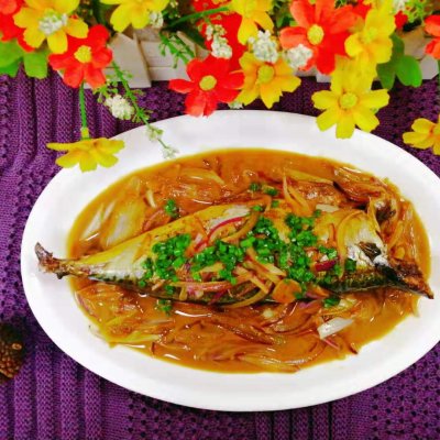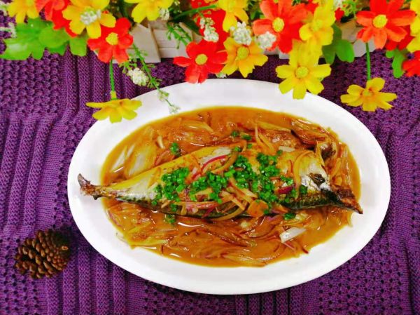 13、盛盘享用。夹起一块鱼肉沾沾汁,别提多好吃。 沾了汁的洋葱丝也很下饭呢。 吃不胖的营养菜!