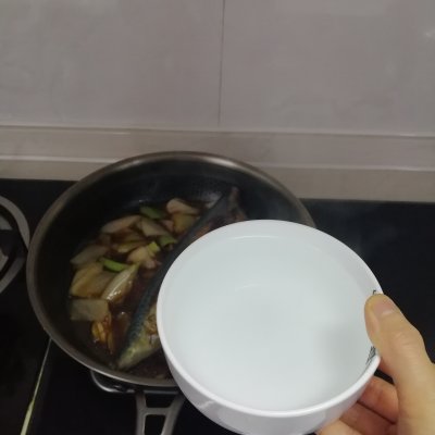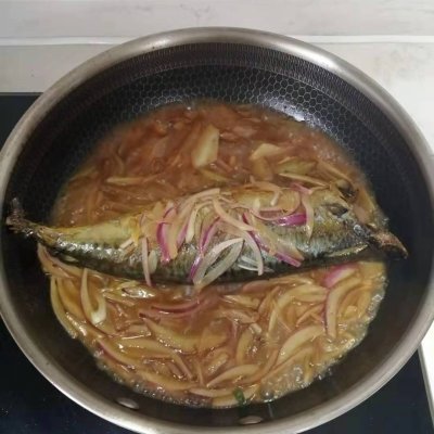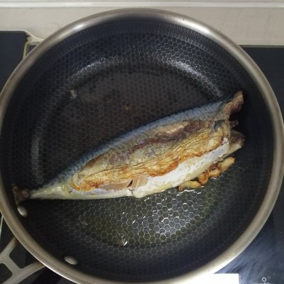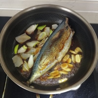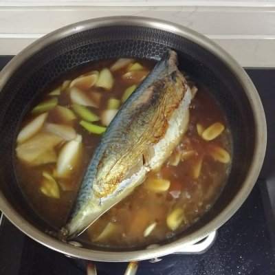 10、煮到一半汤汁时,鱼身翻面,继续盖盖子焖煮