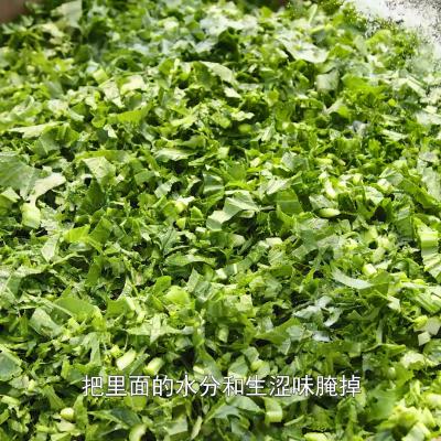 2、食材切碎、撒盐去生涩味,然后用手搓揉5分钟,把水分挤干