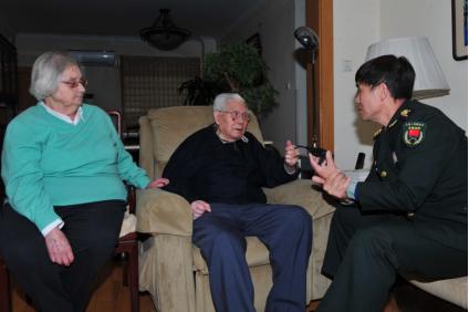 2014年12月15日,我在广州为原总后驻广州的老干部做汇报宣讲。结束后,所领导介绍说,原第一军医大学百岁专家钟英教授就住在广州。我当即前往拜访。因为事先没有打招呼,到了老教授家,他正在做家务,在儿子钟宜光的配合下做面条。见我们到来,老人十分开心,还和儿子在室内打羽毛球给我们看。看到他那样的敏捷,我们不停地为老人家鼓掌叫好。