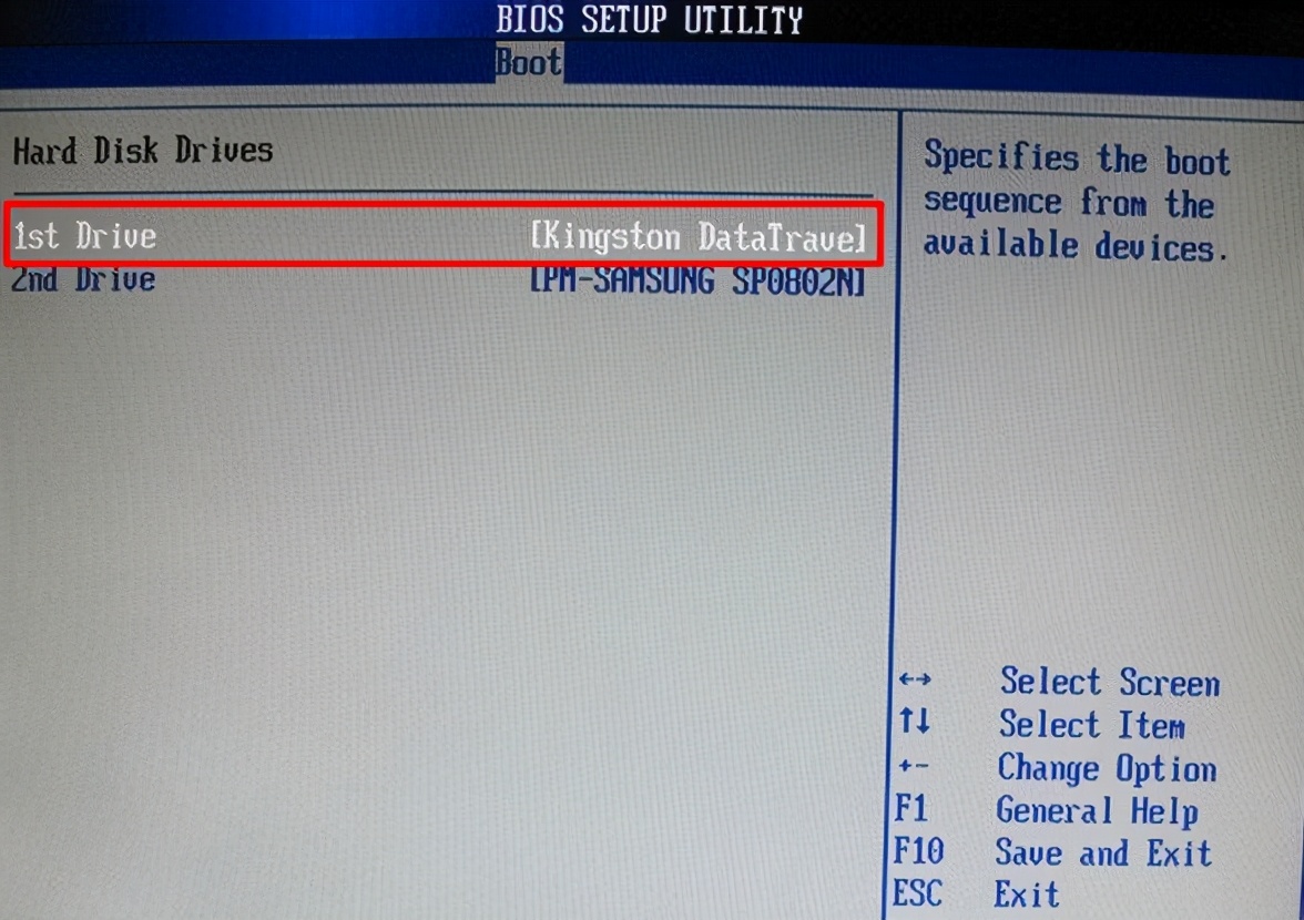 1、如果 “Hard Disk Drives”里面选择了U盘作为第一启动设备,那么在“fist boot device”里面会显示有u盘。