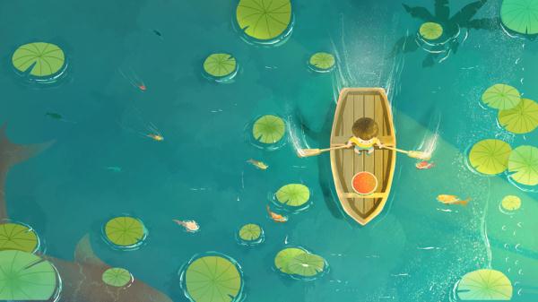 荷叶五寸荷花娇,贴波不碍画船摇。