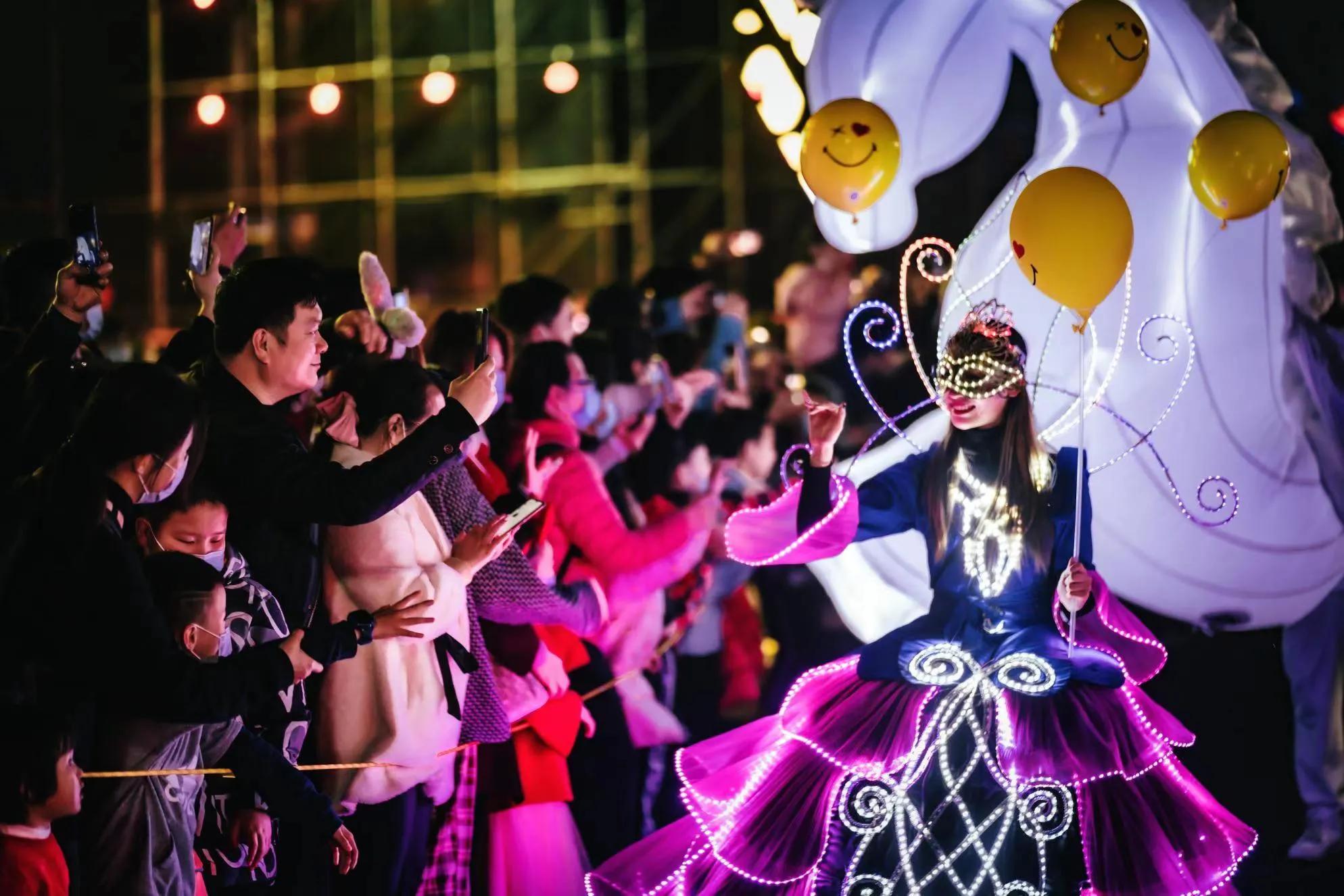 欢乐谷新潮汉味年好戏连连,好评不断。新春晚会和天幕流星雨轮番上阵聚齐欢乐,抗疫英雄情人节当晚上演求婚大作战;新春牛市观舞狮、赏民俗、逛潮街,财神登场赐福气、送金币、传好运;Smiley笑脸360°环绕于LIGHTS游乐园,沉浸式微笑祝福送不停。“来这儿过年体验了一个不一样的武汉年!虽然没能回家过年,但是在这里看了现场春晚,摸了财神的金元宝,过了个红火年。”刚毕业留在武汉过年的湘妹子小陈对记者说道。