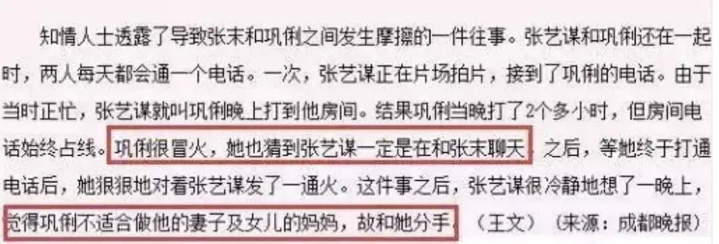 张艺谋和巩俐在一起时,巩俐和张末的关系一直不好。