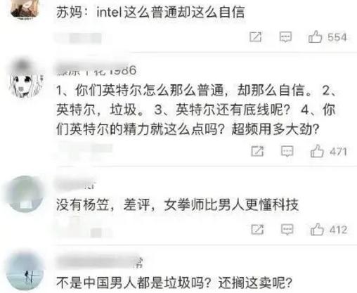 不少网友认为让一个侮辱男性的人,来给以男性群体为主要用户的英特尔做宣传,不合适!