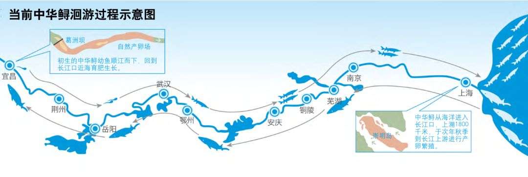 长江上游的金沙江一带就是它们的出生地,而从它们出发的地方到金沙江一带距离约3000多公里。到达金沙江一带时它们就会产卵繁殖,等到幼崽长到15厘米左右时它们就会携带着幼崽们回到大海,直到下一次的繁殖季节来临。