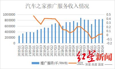 所谓的推广服务,就是帮助经销商从汽车之家用户中找到潜在客户,简单的可以理解为线索收入。从财报数据来看,汽车之家的此项收入一直都维持较高速度增长,直到2020年,此项收入显得有些吃力。