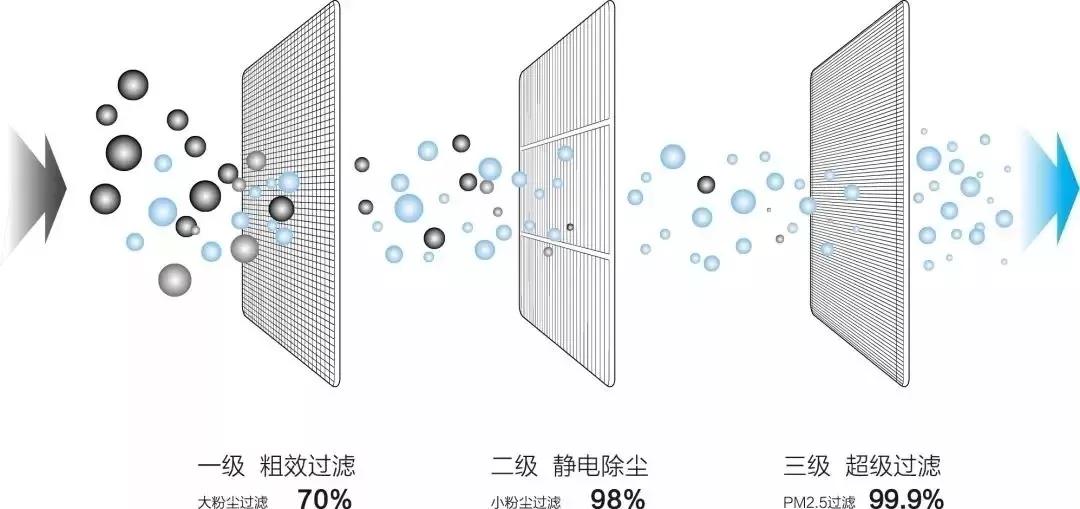 ◆ 静电吸附:新风机内制造一个强电场,静电吸附空气中的颗粒物。这种能清洗,后期无需更换滤材,但会产生臭氧。物理过滤和静电吸附是可以混合使用的,效果会更好。