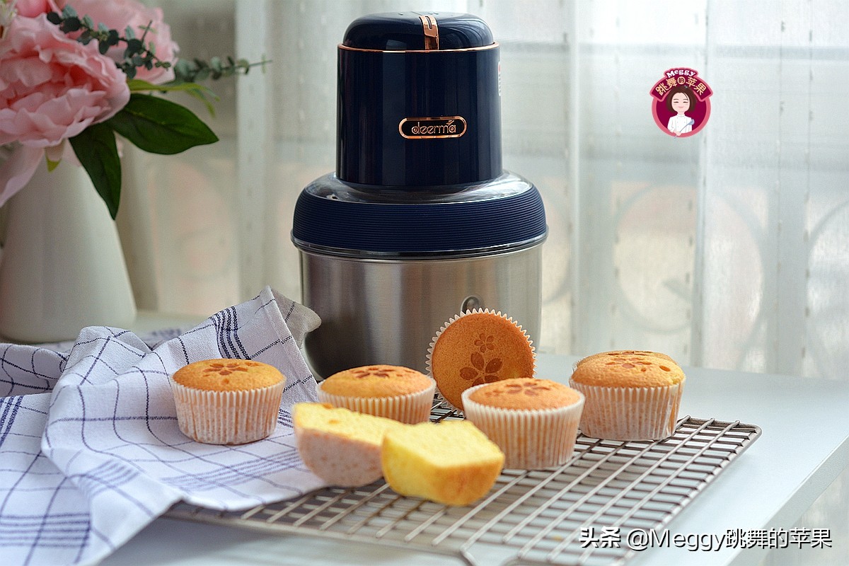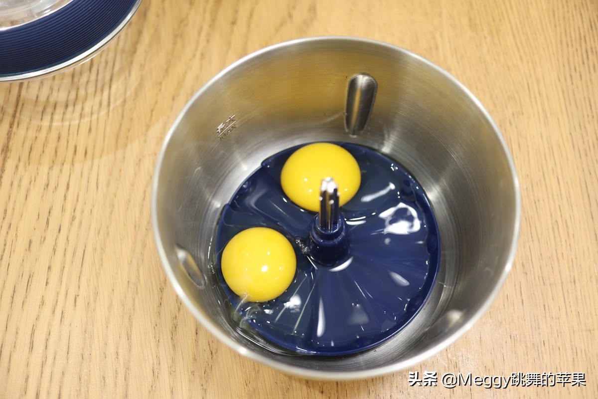 今天咱这小蛋糕,就是用绞肉机自带的打蛋器打发而成的。但,毕竟不是专业打蛋的,所以在蓬松度上差一些。没事儿,加一点泡打粉,成功率百分百。如果不加,很可能就是一个硬饼子啦。