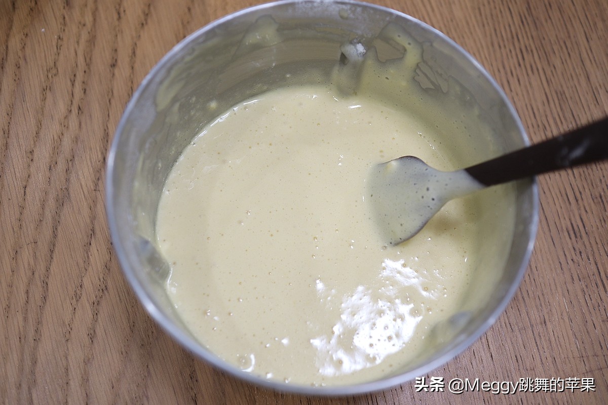 8. 将牛奶和玉米油倒入蛋糊;