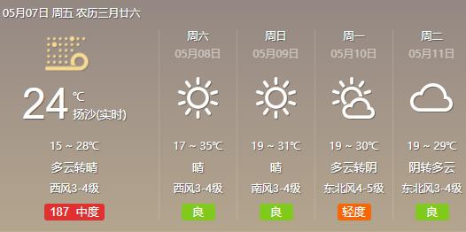 根据河南气象发布的消息, 今天白天到夜里,全省晴天间多云。今天白天,西北部、中部西北风或偏西风5级到6级,局地阵风8级左右,其它地区偏西风3到4级。今天夜里,全省西南风3级左右。今天白天到夜里,全省大部有浮尘或扬沙。