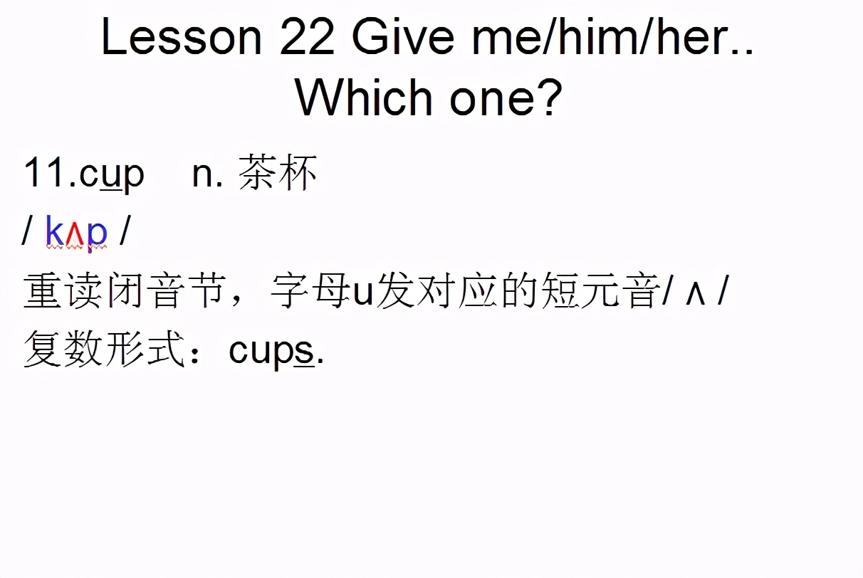 3.large / lɑ:d? / adj. 大的 11.cup / k?p / n. 茶杯