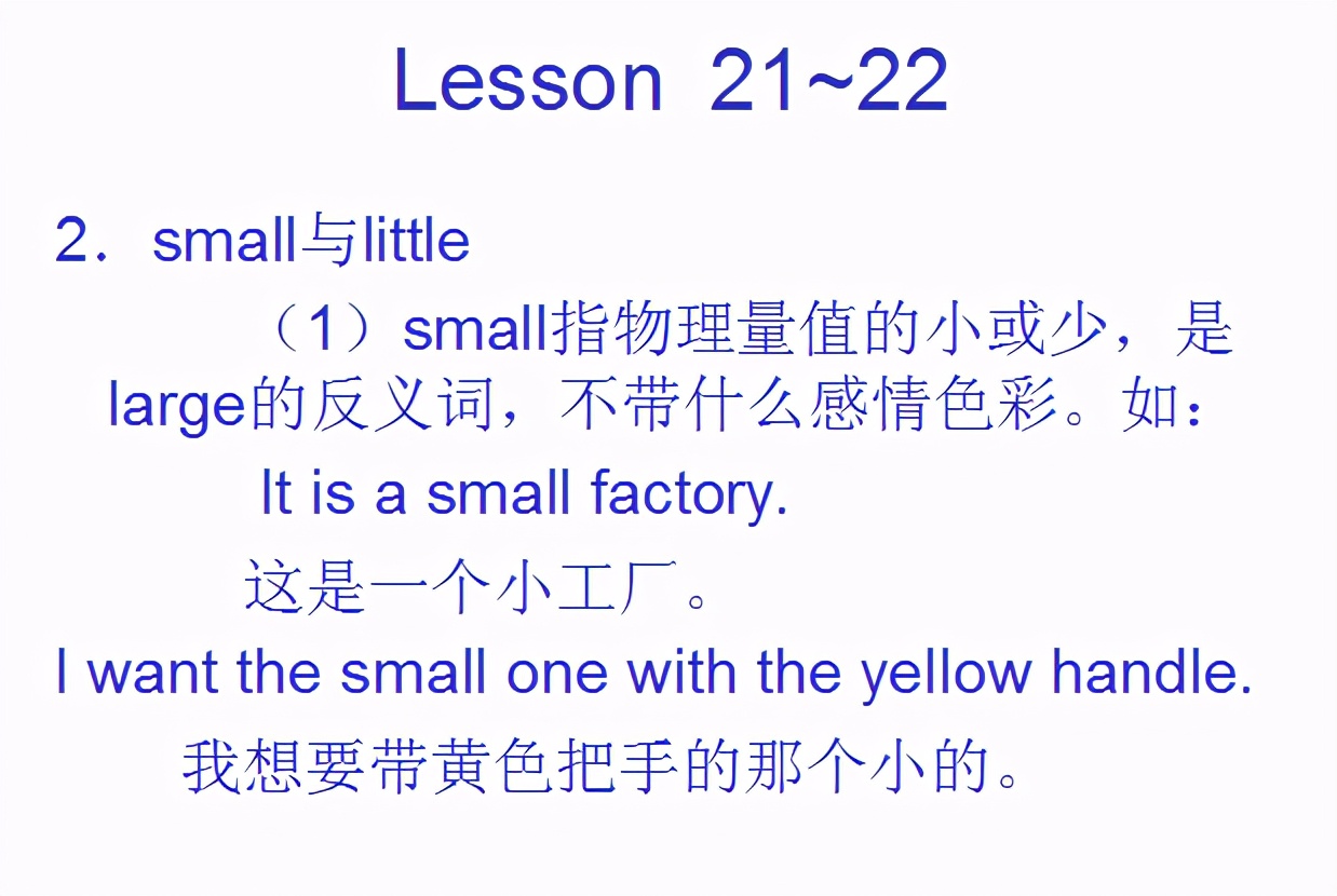 (2)little也表示小或少,但有小而可爱的感情色彩,是big的反义词。如: