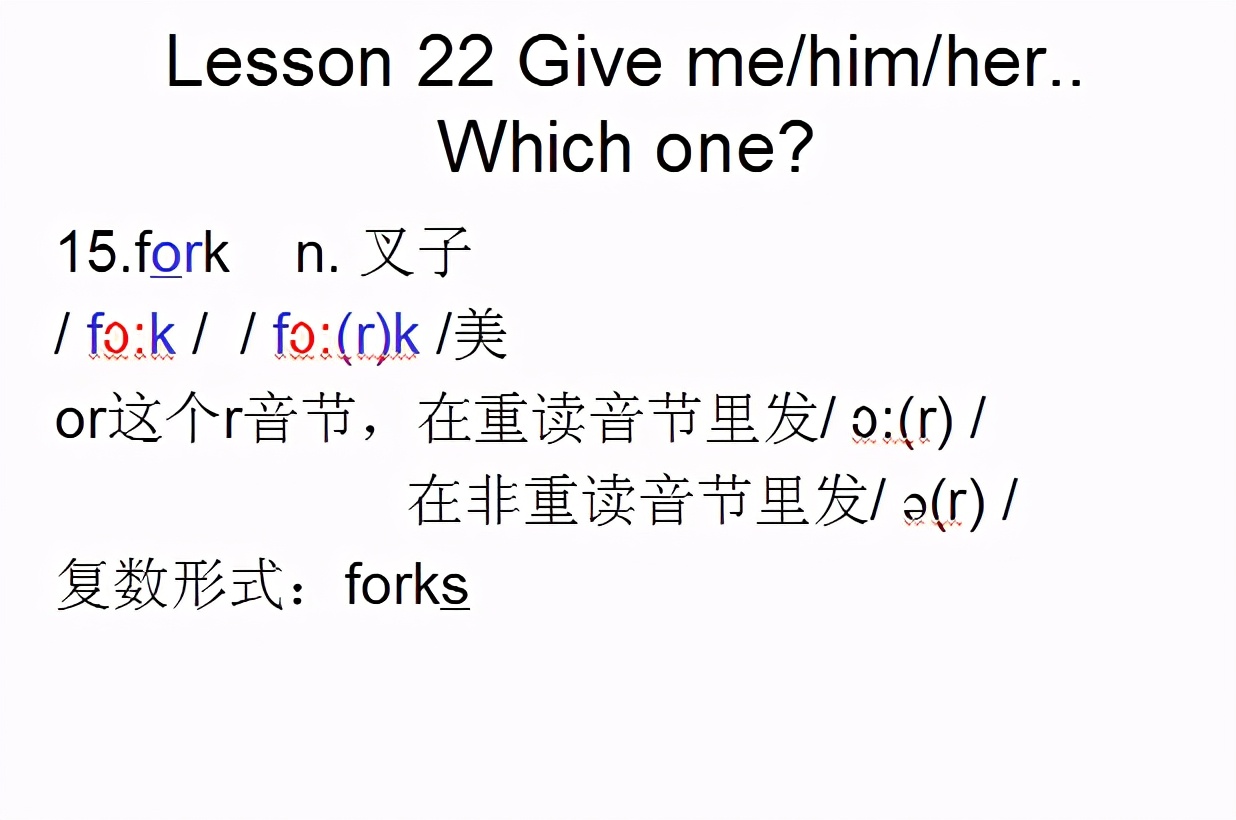 7.big / bIg / adj. 大的 15.fork / f?:k / n. 叉子