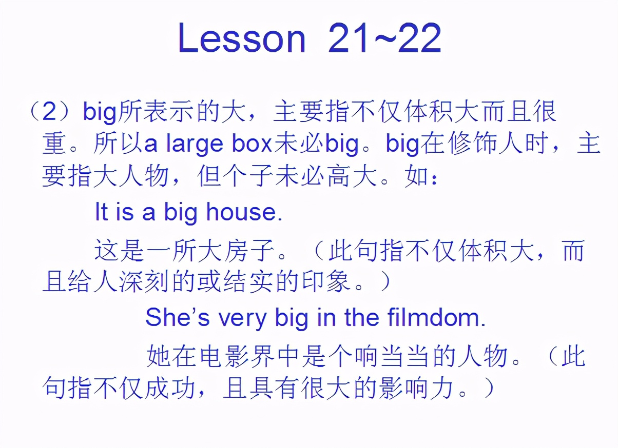 large主要指体积、面积、形状、数量方面的大,修饰人时指个子大。如: