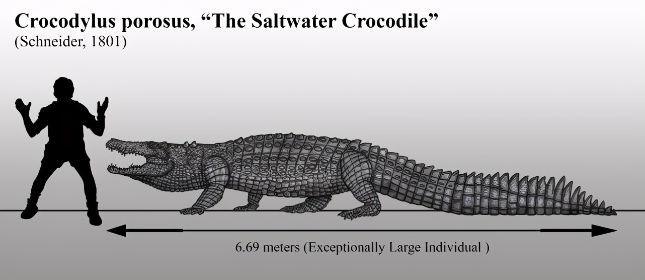 咸水鳄学名叫湾鳄,是世界上最大的鳄鱼,同时也是现存世界上最大的爬行动物,一只成年雄性咸水鳄的体长可达5米,最大可超过6米。