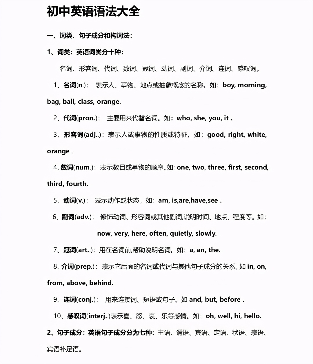 需要从词性的角度整理了初中语法的内容共143页,希望可以帮到大家(可打印收藏)。