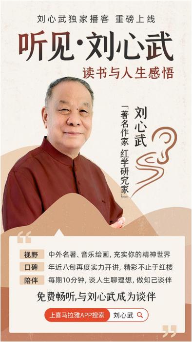 刘心武表示:“随着时代的发展,人们接收信息、汲取文化营养的方式一直在变化,现在更流行听。我发现年轻一代更喜欢听书,更喜欢用声音来吸取营养。我很高兴能在喜马拉雅做这样一档播客节目。这既是新型的信息传播方式,也给大家提供了一种文化交流的新途径。”