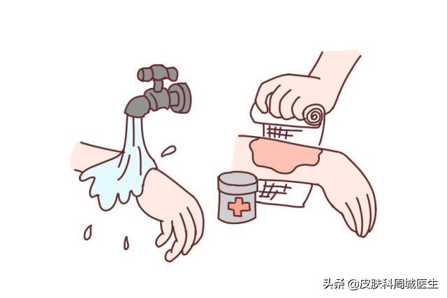 3. 水疱不要撕。小的水疱通常可以自行吸收,大的水疱可以消毒后用无菌注射器抽吸放出疱液后,保留疱顶,然后用无菌敷料包扎,保持局部清洁干燥。