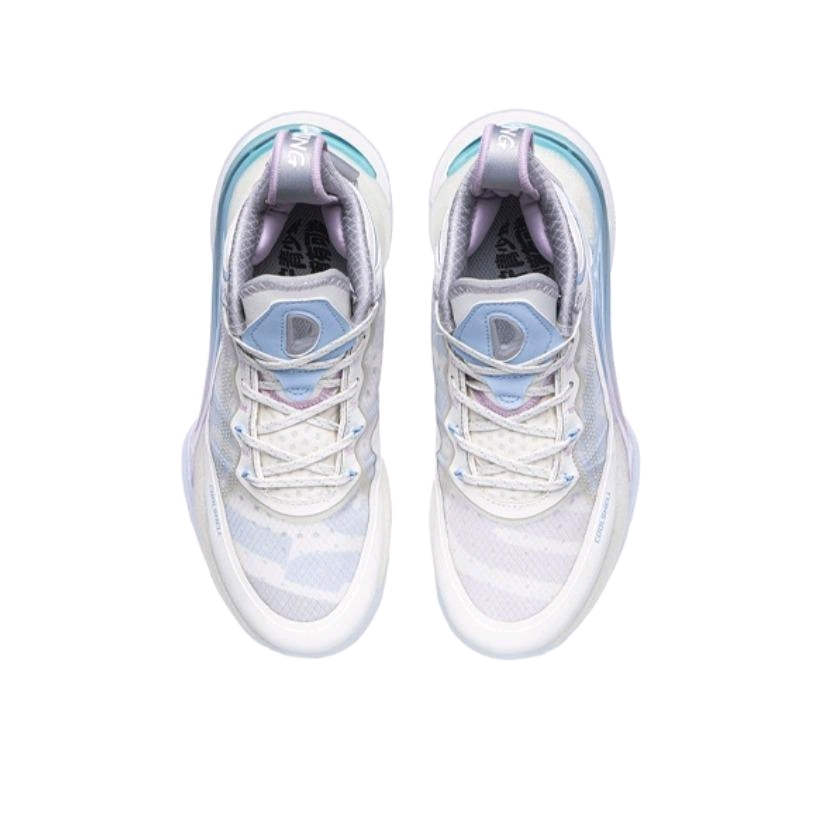 首先,这双李宁灵刃一代 Premium版本的配色部分就非常值得肯定:球鞋的鞋身主体部分,采用了米黄色作为基础配色,并且李宁在这双球鞋的鞋面多处加入了蓝色和紫色等浅色系进行点缀,使得这双球鞋看起来相当的粉嫩。另外,李宁还在这双球鞋的鞋面部分加入了特殊的电镀工艺处理,在此加持下小编觉得这双球鞋的配色,与李宁最为经典的棉花弹配色有的一拼,你觉得呢?